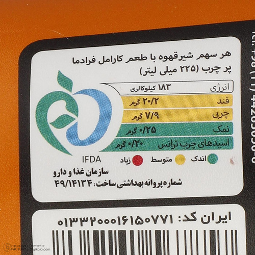 سایر توضیحات- شیر قهوه: ترکیب عصاره قهوه، کارامل و شیر